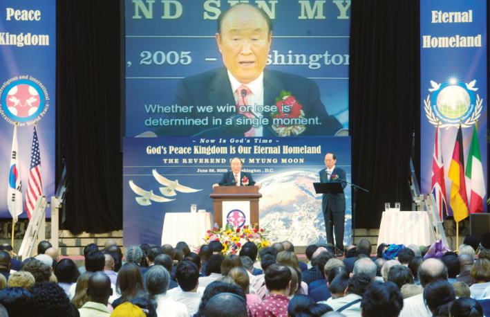 全世界を一日の生活圏として結び、人種、文化、宗教、国家の壁を崩し、神様が何よりも願ってこられた平和世界をこの地球星に創建しようということです」