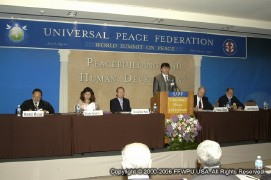 ワールドピースサミットはUPFを平和のための精神的、実用的政策を効果的に結びつけた国連の 「新しいモデル」と称した文鮮明総裁が設立者であるUPFが後援しています。