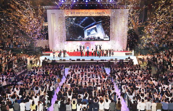 会場には、真のご家庭をはじめ、新規ゲスト約2500人、東京(5地区)の各教会の教会員や平和大使、VIPなど約1万2000人が参加し、フェスティバルの様子はインターネット中継で全国の教会に配信されました。