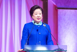 韓鶴子総裁がメッセージを語られ、「『神様のもとの人類一家族』となる夢を実現するために、日本の皆様が、世界の前に母として、人類を兄弟として教育し、束ねていくために総力を挙げなければなりません」と強調されました。