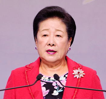 崔道子(チェ・ドヂャ)国会議員は、「天の国から故文鮮明総裁がきょうの行事を祝っていらっしゃると思います」と語り、少子化問題や南北統一運動に積極的に取り組むことを誓いました。