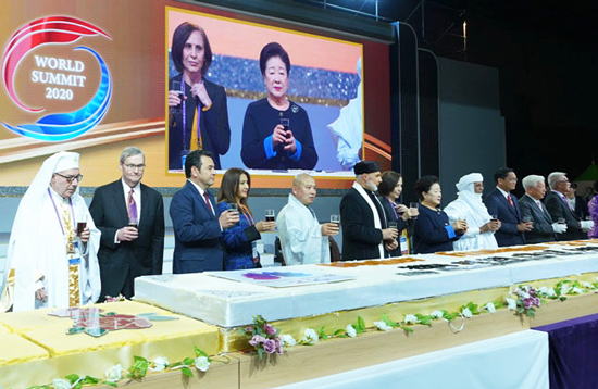 ワールドサミットには前・現職首脳約150人のほか、国会議員や宗教指導者、メディア関係者、ノーベル賞受賞者など120カ国から約6000人が参加し、世界平和のために「共生・共栄・共義」主義を広める活動を推進することを確認しました。