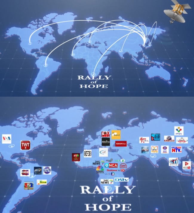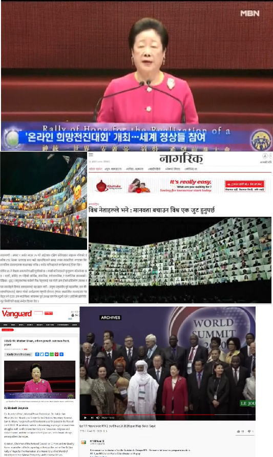 今大会は、真の父母様によって立てられた平和団体、特に世界平和頂上連合を中心に進められました。大会の模様はインターネットを通して、9か国語の同時通訳により世界194か国に配信され、142万人が視聴。また、国営放送を含む約70のメディアによって中継されました。