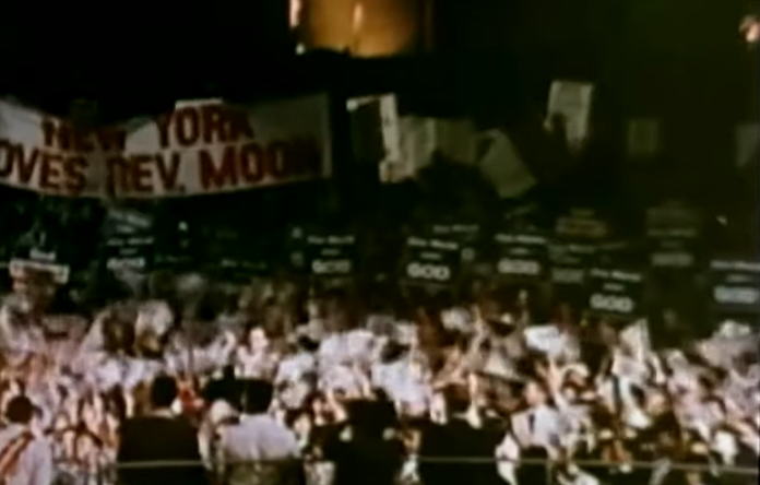 文鮮明師は、アメリカを神の元に戻す運動の一環としてマディソンスクエアガーデン(ニューヨーク)で大会を開いた。