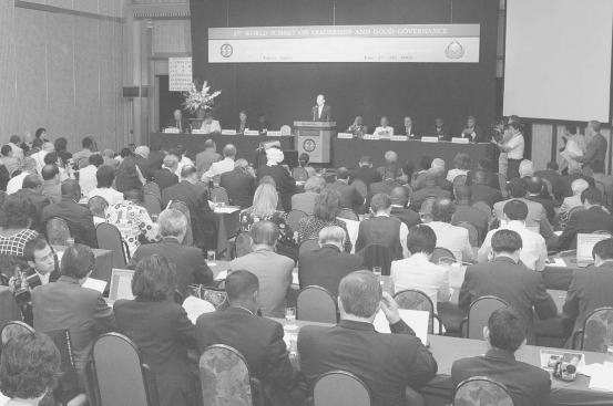 8日の開会総会で、郭錠煥IIFWP世界会長が、多くの人権団体が人権を利己的な政治目的に利用していることを指摘し、IIFWPの原理を反映した「人権と地球的責任委員会」の設立を提唱しました。その後、バヌアツのハム・リニ首相、アイスランドのヘルマンソン元首相、リベリアのジョンソン副大統領、インドネシアのワヒド元大統領らが講演を行いました。29日夜に行われた閉会バンケットでは、①「他者のために生きる原理」を土台とするリーダーシップと良きガバナンスの重要性を強調する②国連メンバーを国家に縛られない組織などにも拡大し、超宗教議会を組織することで、国連の国際平和機構としての卓越性の維持を推し進める③IIFWPのグローバルネットワークを国連の平和構築努力を補強するために投じる―などをうたった「東京宣言」を採択しました。