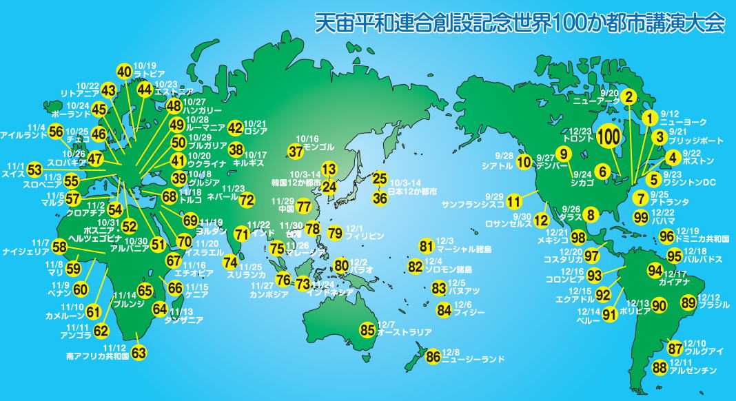 その後、天宙平和連合創設記念大会が世界100か都市で開催されました。(2005年9月12日~12月23日)